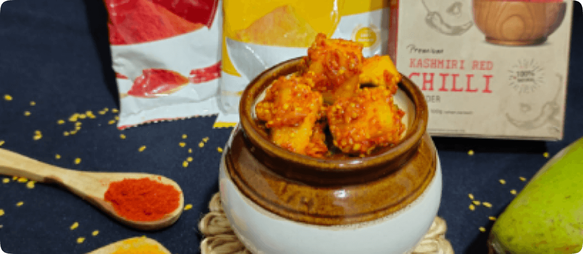 Tangy delicious and easy to make Gujarati style raw mango pickle